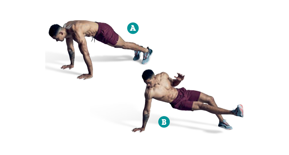 Jump lunge (both legs), tuck jump (i.e. lift knees to chest), pushup.